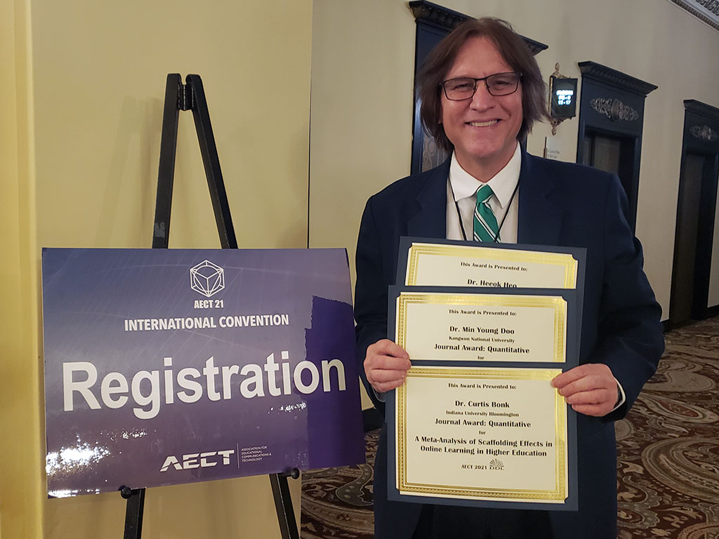 Curt Bonk, Professor in Instructional Systems Technology, recently won two prestigious awards at the Association for Educational Technology and Communications (AECT) Conference: First Place, Quantitative Journal Article, and the David H. Jonassen Excellence in Research Award.
